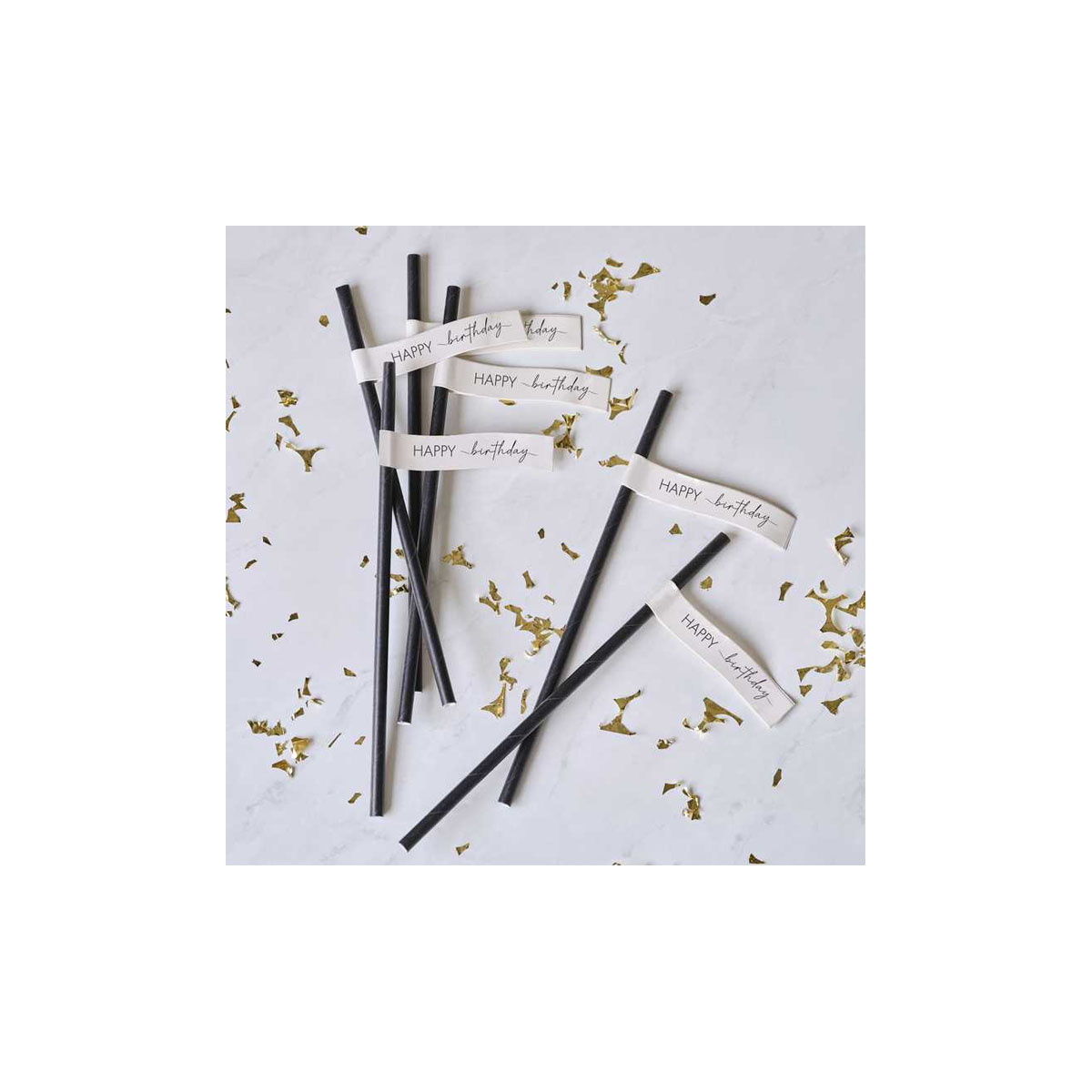 Κάθε συσκευασία περιέχει 16 καλαμάκια μήκους 20 cm με σημαίες Happy Birthday.